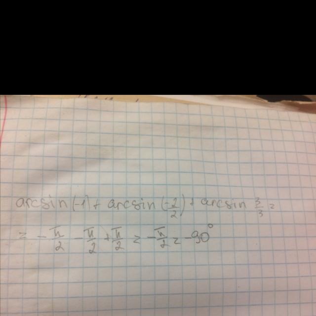вычислите arcsin(-1) + arcsin (-2/2) + arcsin 3/3