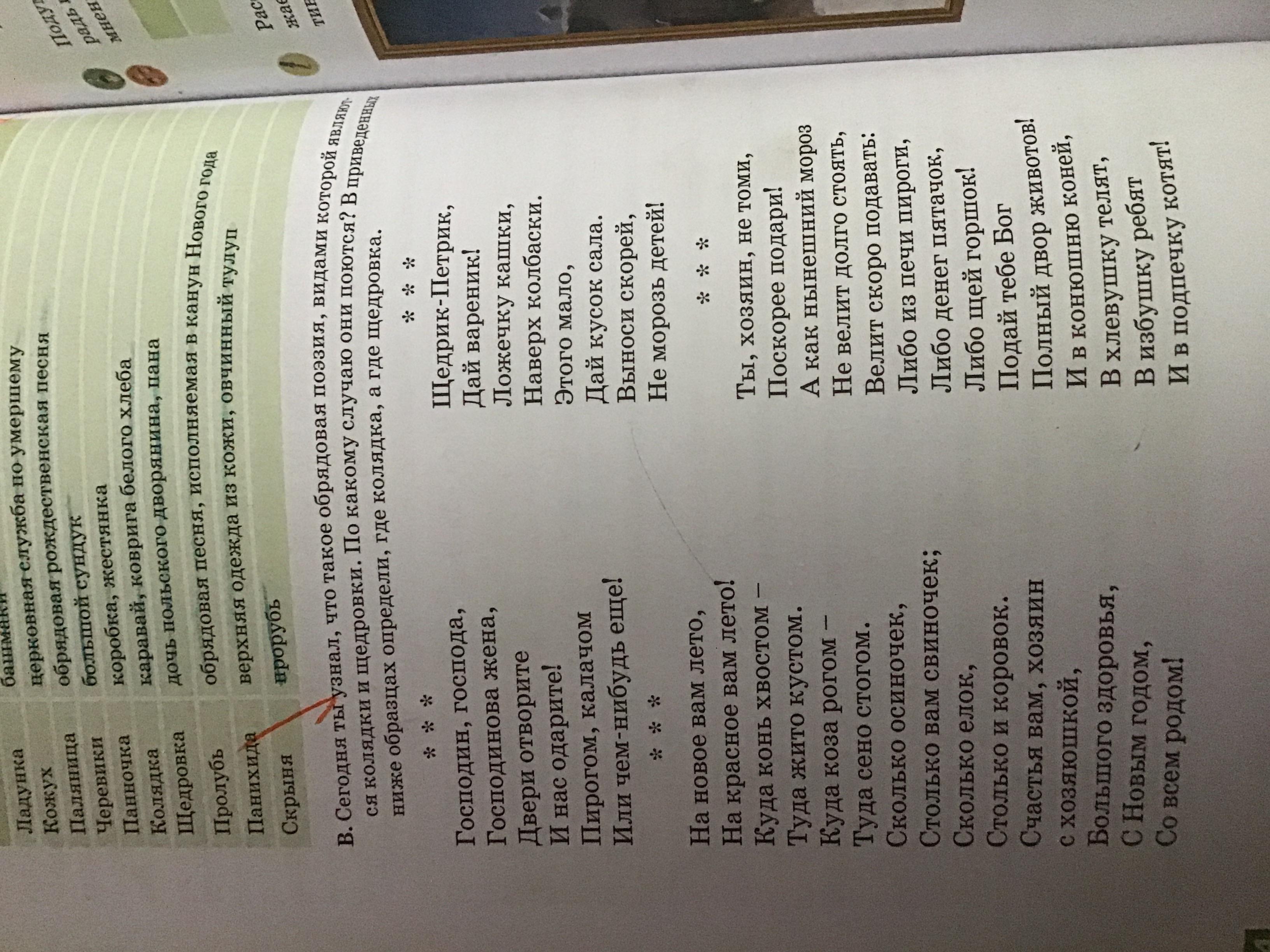 "Щедрик-Петрик" - щедровка, "Ты, хозяин, не томи..." - колядка, "Господин, господа, господинова жена" - колядка, "На новое вам лето..." - колядка.
