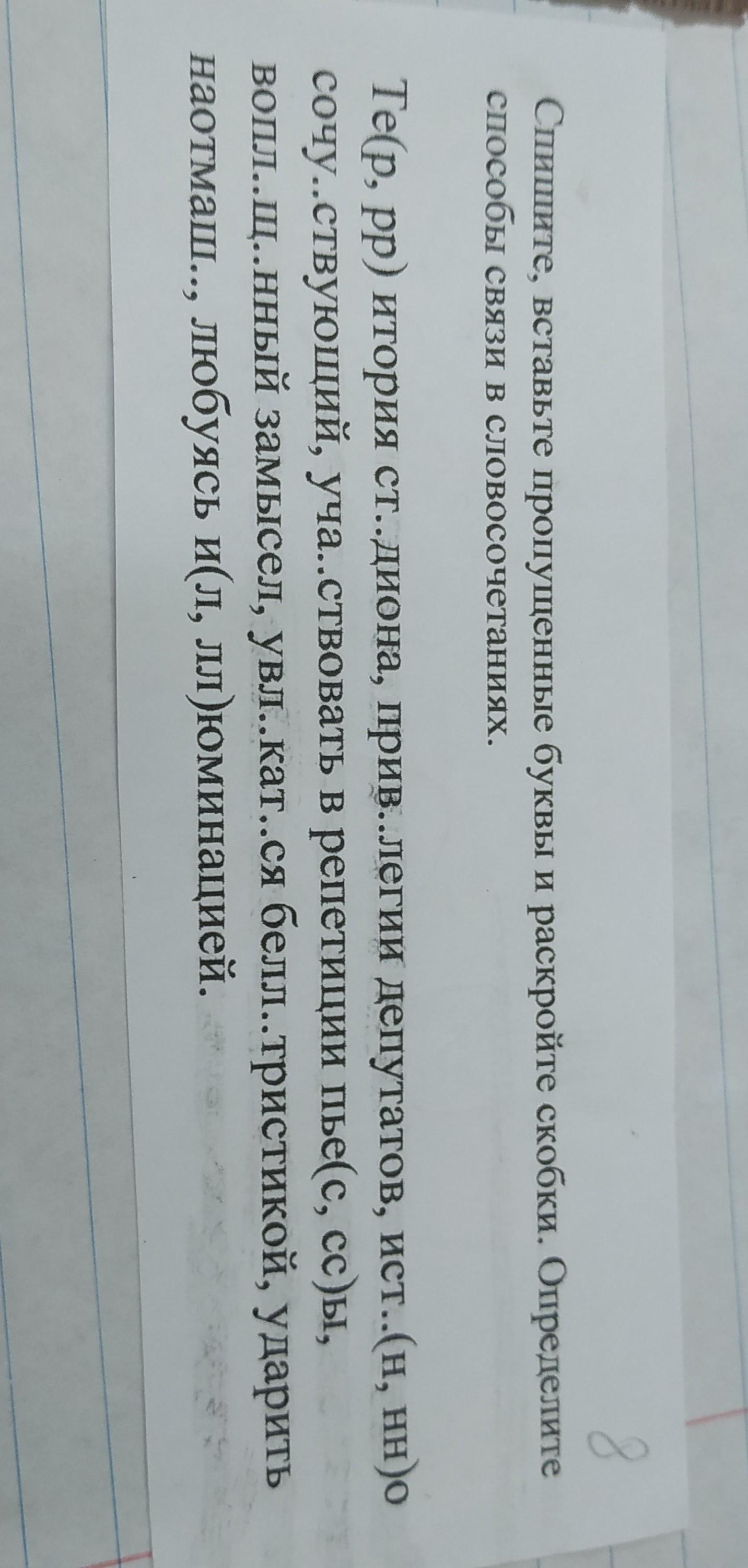 спишите,вставьте пропущенные буквы и раскройте скобки.Определите способы связи в словосочетаниях