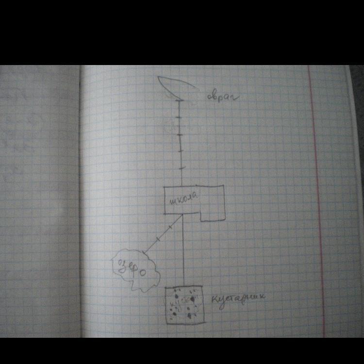 Составьте план местности в масштабе в 1см100м.В центре страницы в тетради условным знаком обозначьте школу . На расстоянии 500 м от школы в направлении на север - овраг, в 300 м на юго- запад- озеро,в 400 м на юг - кустарник