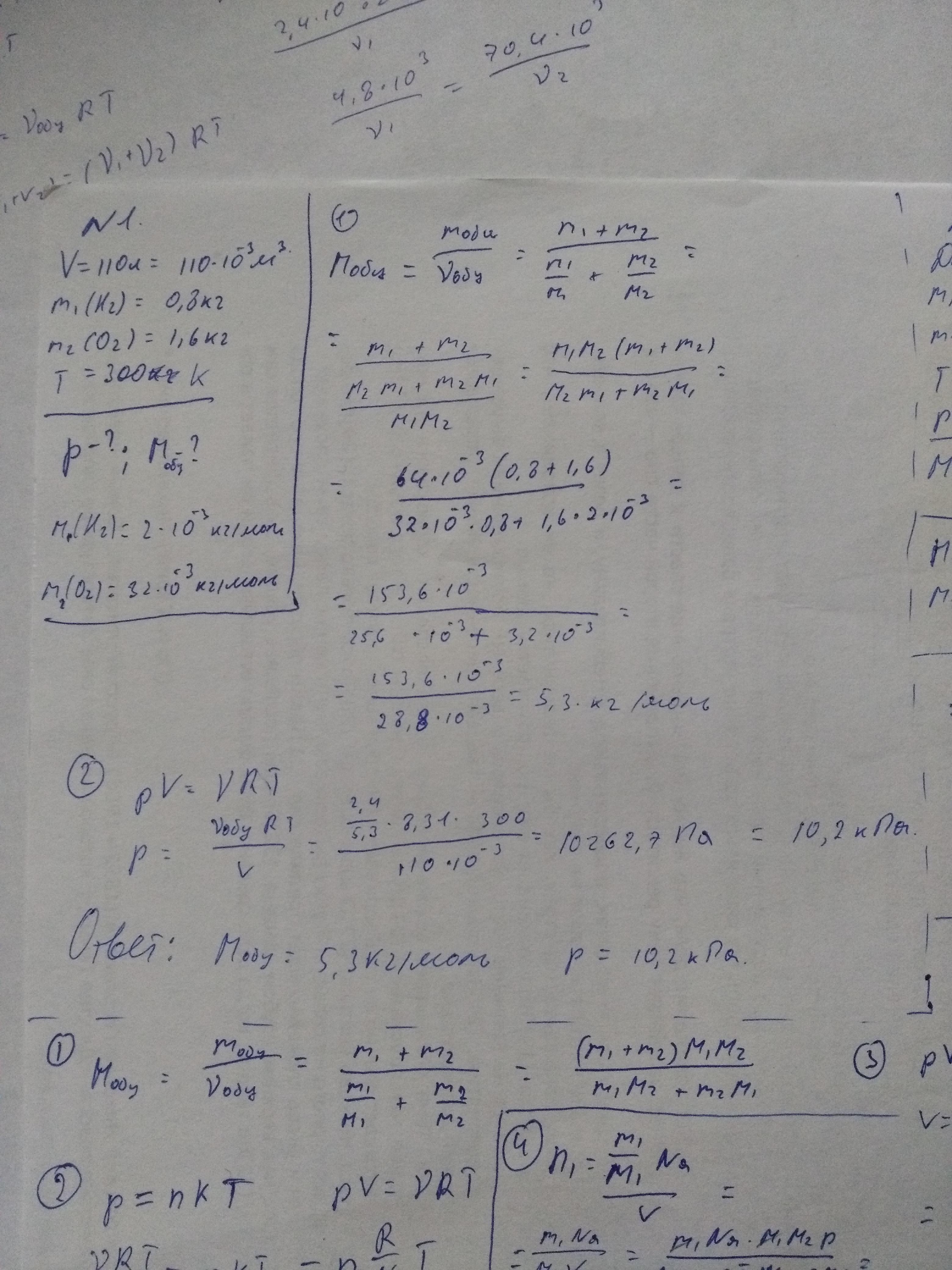 В баллоне ёмкостью110 л находится 0,8 кг водорода и 1,6 кг кислорода.