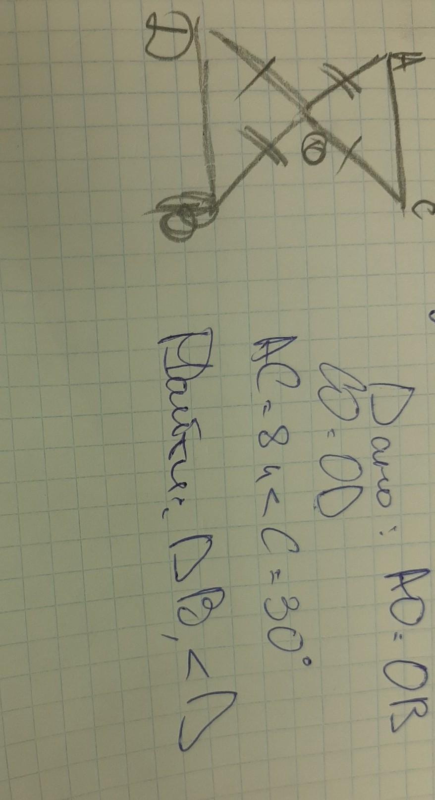 ∆ACO=∆DBO по двум сторонам и углу между ними=>