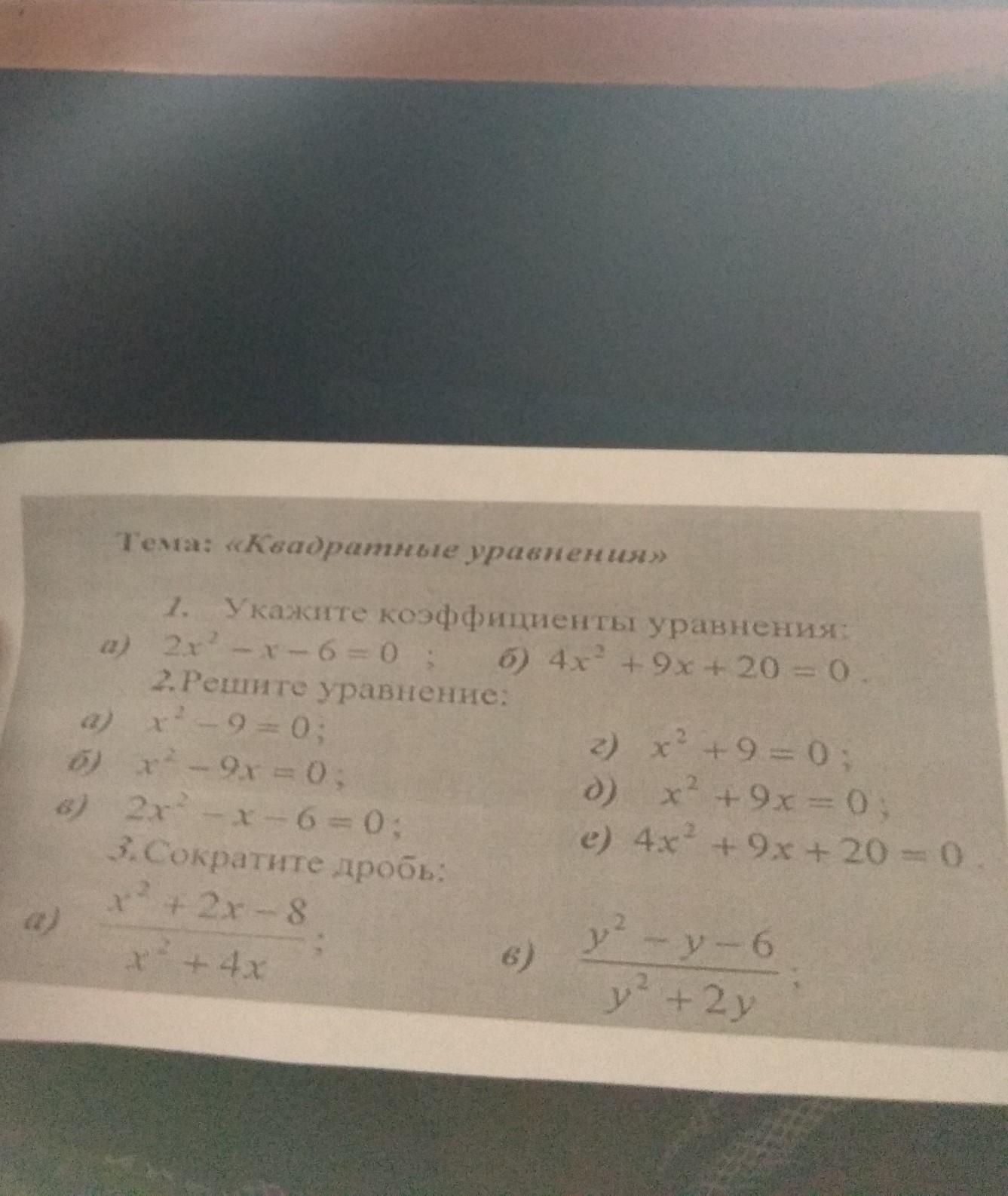 коэффициент уравнения 2 икс в квадрате минус икс минус 6 равно 0