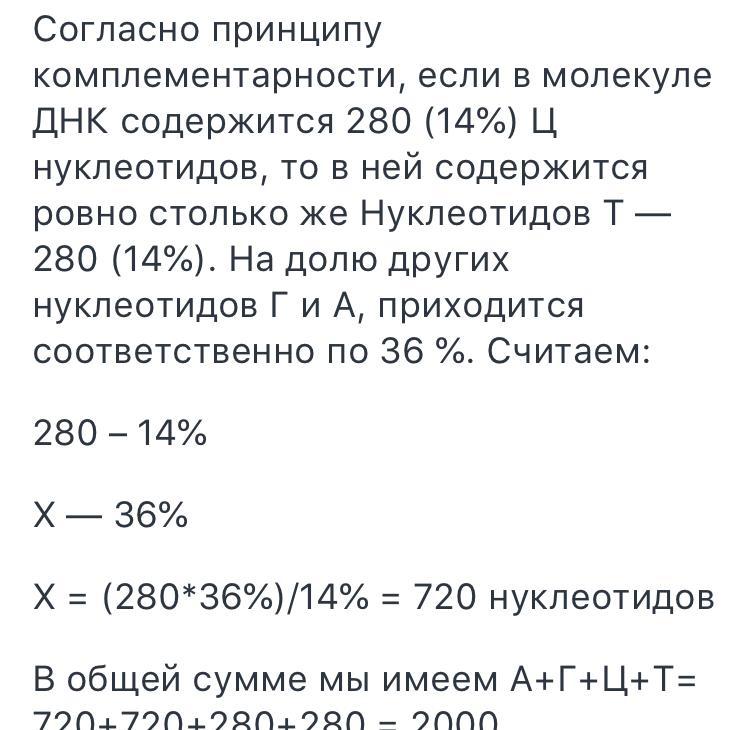 Фрагмент молекулы ДНК содержит 200 остатков тимидиловых нуклеотидов что составляет 14% от общего количества нуклеотидов Определите длину данного фрагмента ДНК