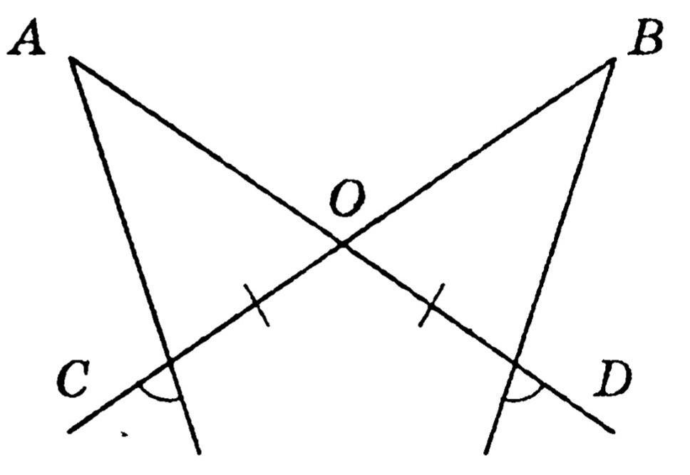 Из этих трех равенств следует что треугольник АОС равен треугольнику ВОD по стороне и двум углам. Следовательно АС=BD, AO=BO