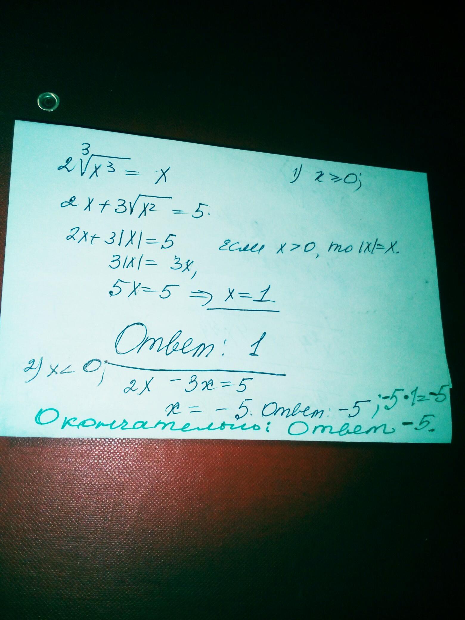 б)x<0, 2x-3x=5; -x=5; x=-5. ответ: -5·1=-5.