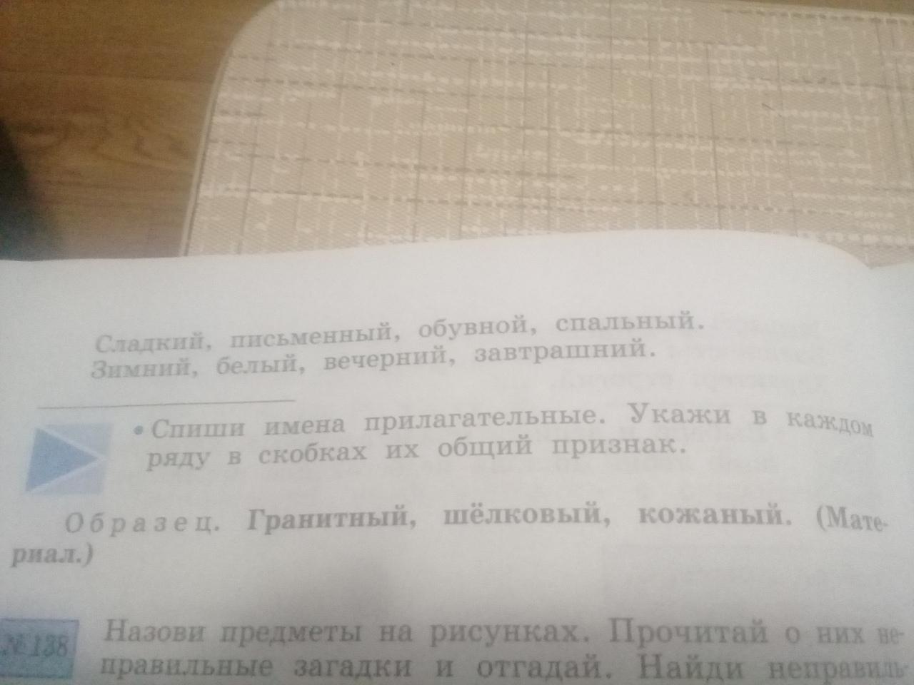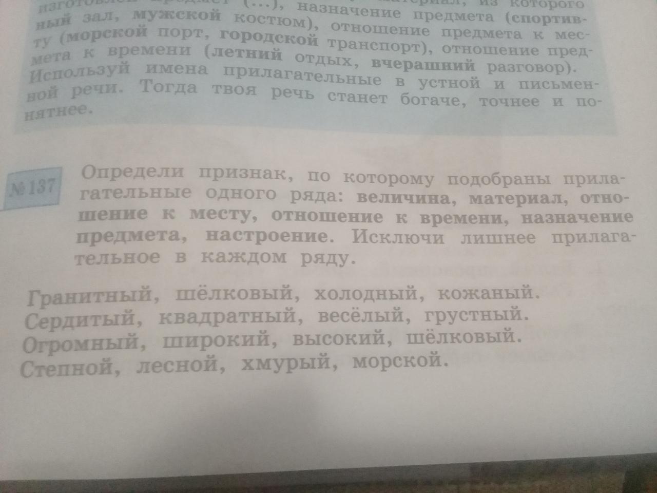 УПР 137 СПИШИ ИМЕНА ПРИЛАГАТЕЛЬНЫЕ . УКАЖИ В КАЖДОМ РЯДУ В СКОБКАХ ИХ ОБЩИЙ ПРИЗНАК.