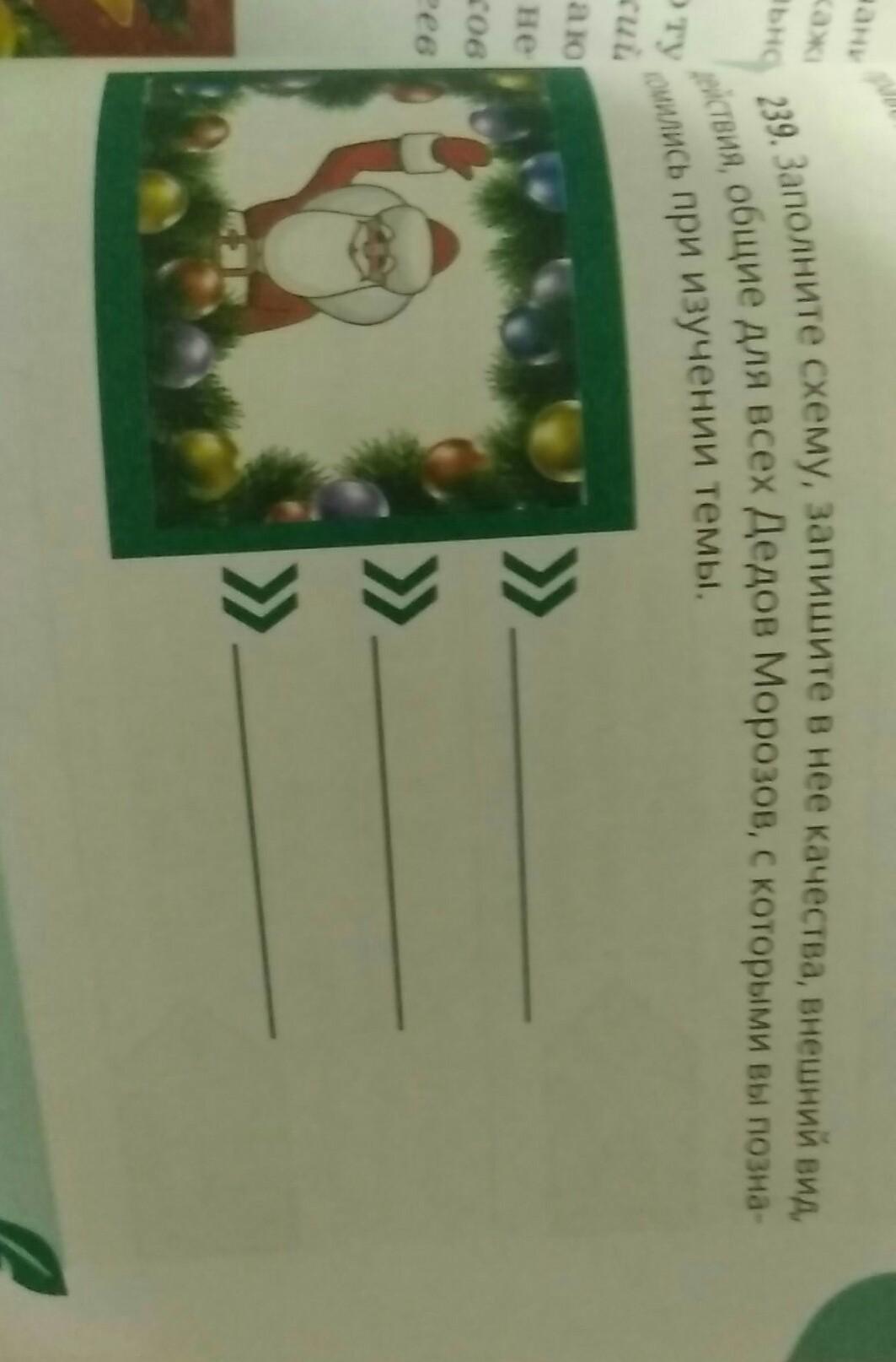 Заполните схему,запишите в нее качества, внешний вид,действия,общие для всех Дедов Мороз,с которыми вы познакомились при изучении темы