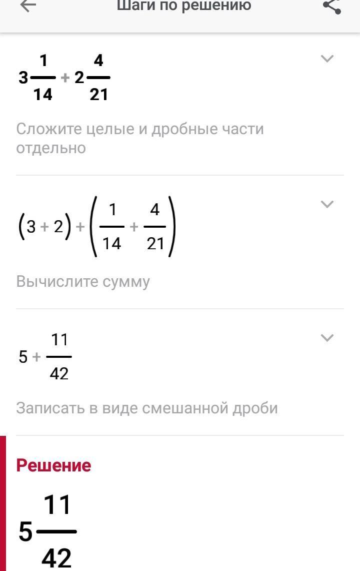 3 1/14+2 4/21= 3+2(3*1/42+2*4/42)=5 11/42