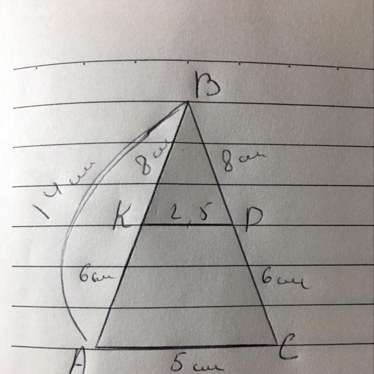 В треугольнике ABS KP-средняя линия: сторона AC-5см AB-14см PC-6см. Найдите периметр треугольника BKP