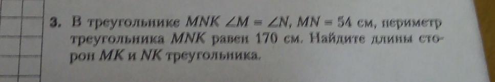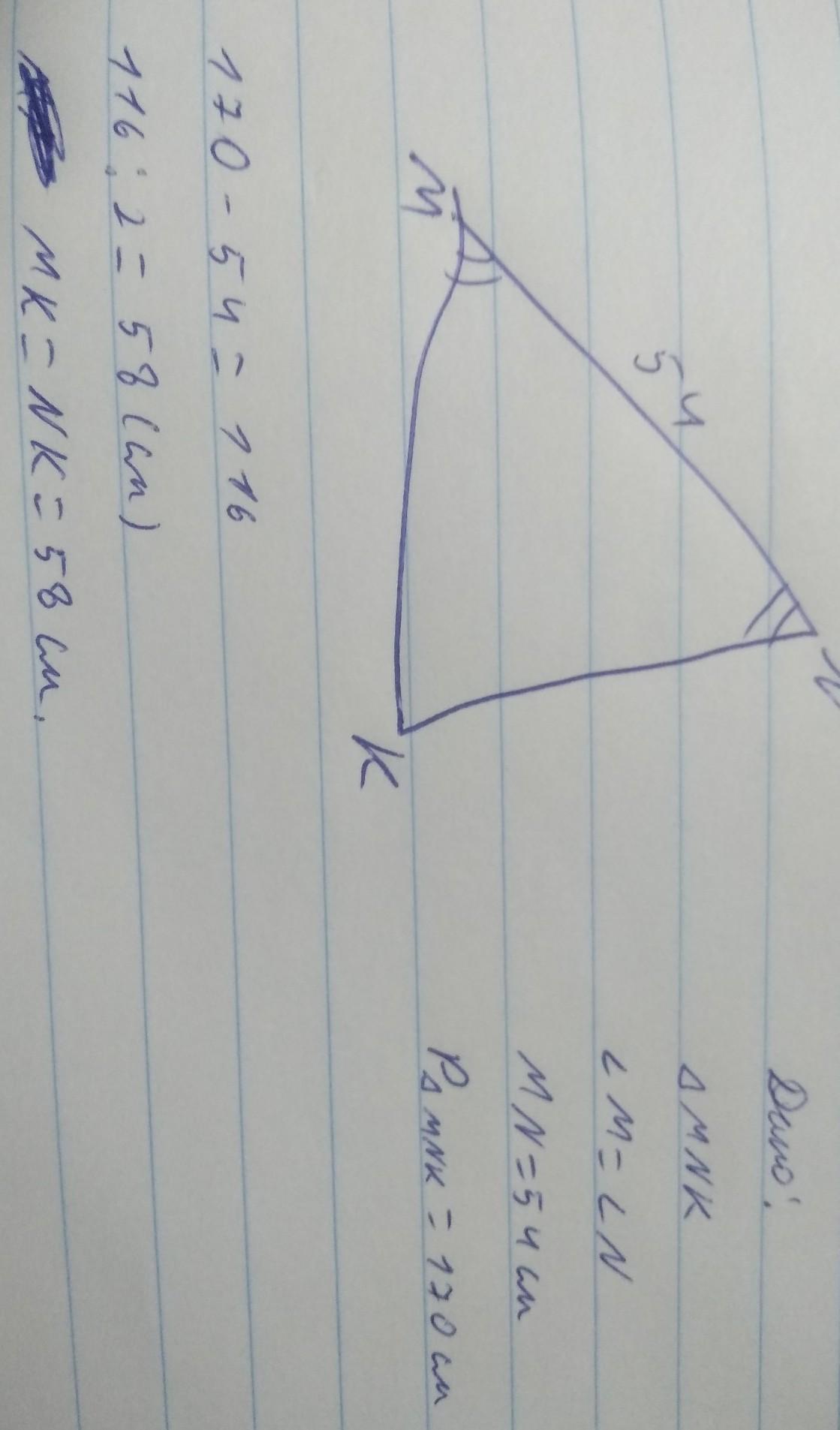 МN - основание треугольника, то что углы при основании равные говорит о том, что треугольник равнобедренный, отсюда МК = NК значит