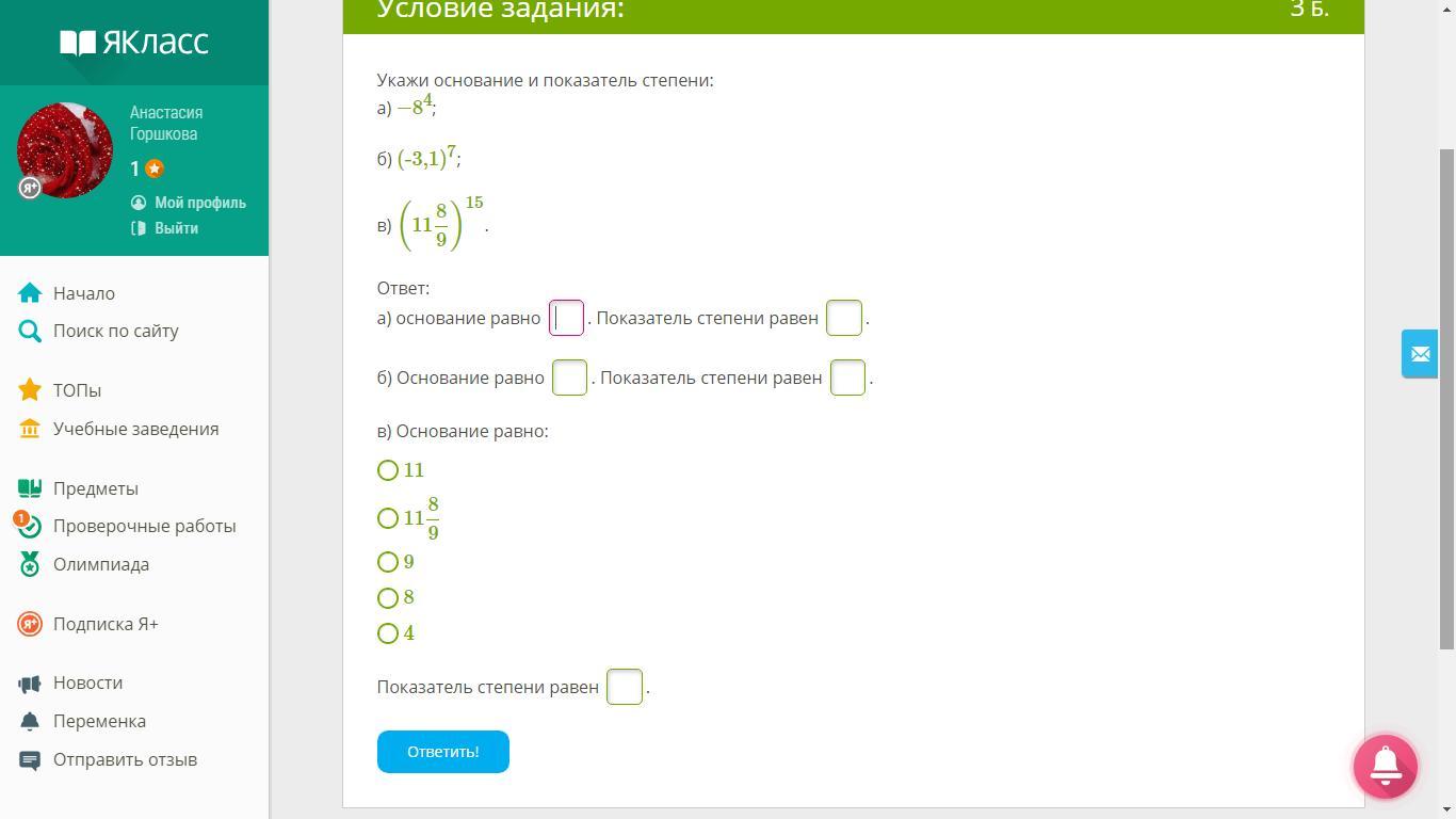 б) основание(-3,1) показатель 7