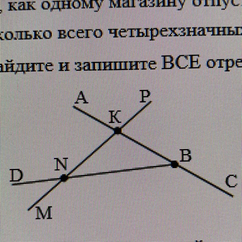 Лучи : KA,KP,BC, NM,ND: Отрезки : KN, KB,BN,