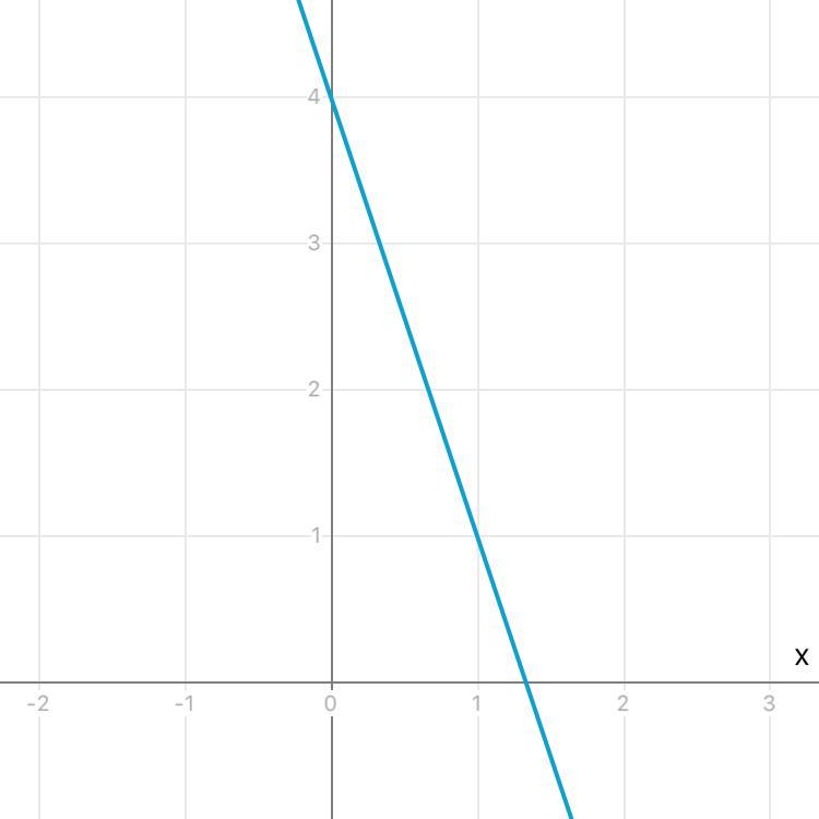 Корінь (4/3, 0) перетин з віссю координат(0 ;4)