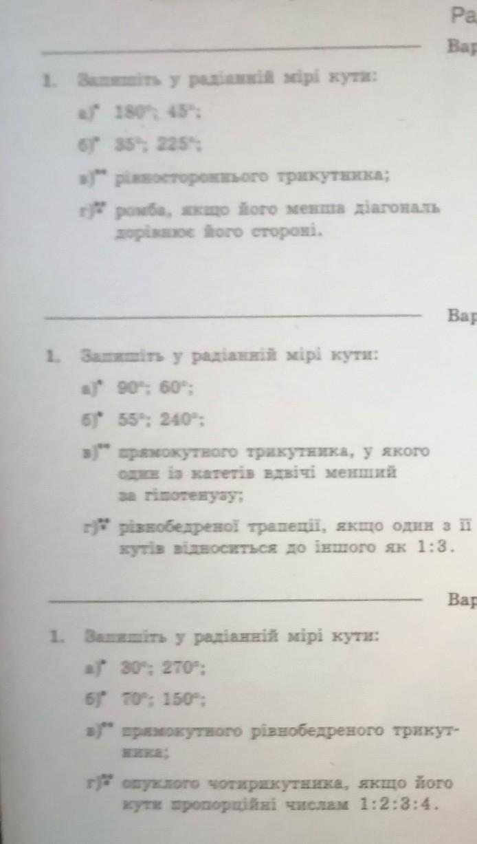 г) угол №1 = 45 град = п/4 и угол №2 = 135 град = 3п/4