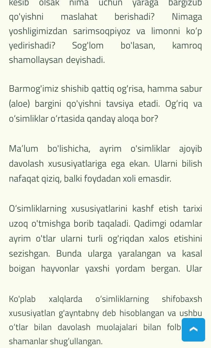 Сочинение на тему “Shifobaxsh Osimliklar” на узбекском языке , помогите срочно! дам максимальный бал