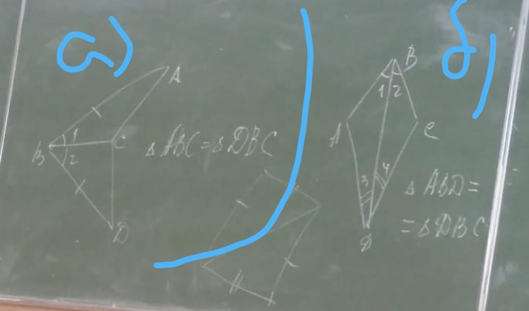 а) АВ =ВД, ВС=ВС, <1=<2 -первый признак