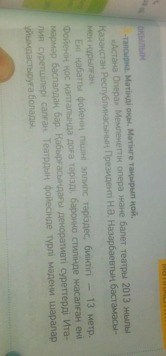 {Астана опера} это государственная опера и театр балета в 2013 году президент Республики Казахстан Н.А. Назарбаев начал стройтельство. Всё что я смог