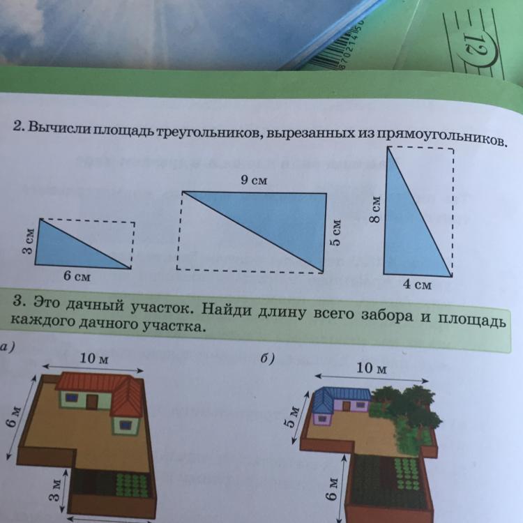 2. Вычисли площадь треугольников, вырезанных из прямоугольников.