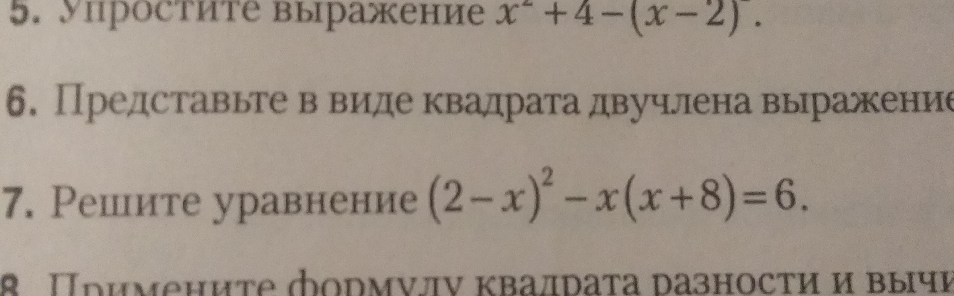 Ответ: откроем скобки 4-4*х+х^2-х^2-8*х-6=0 или - 2=12*х или х=-2/12=-1/6.