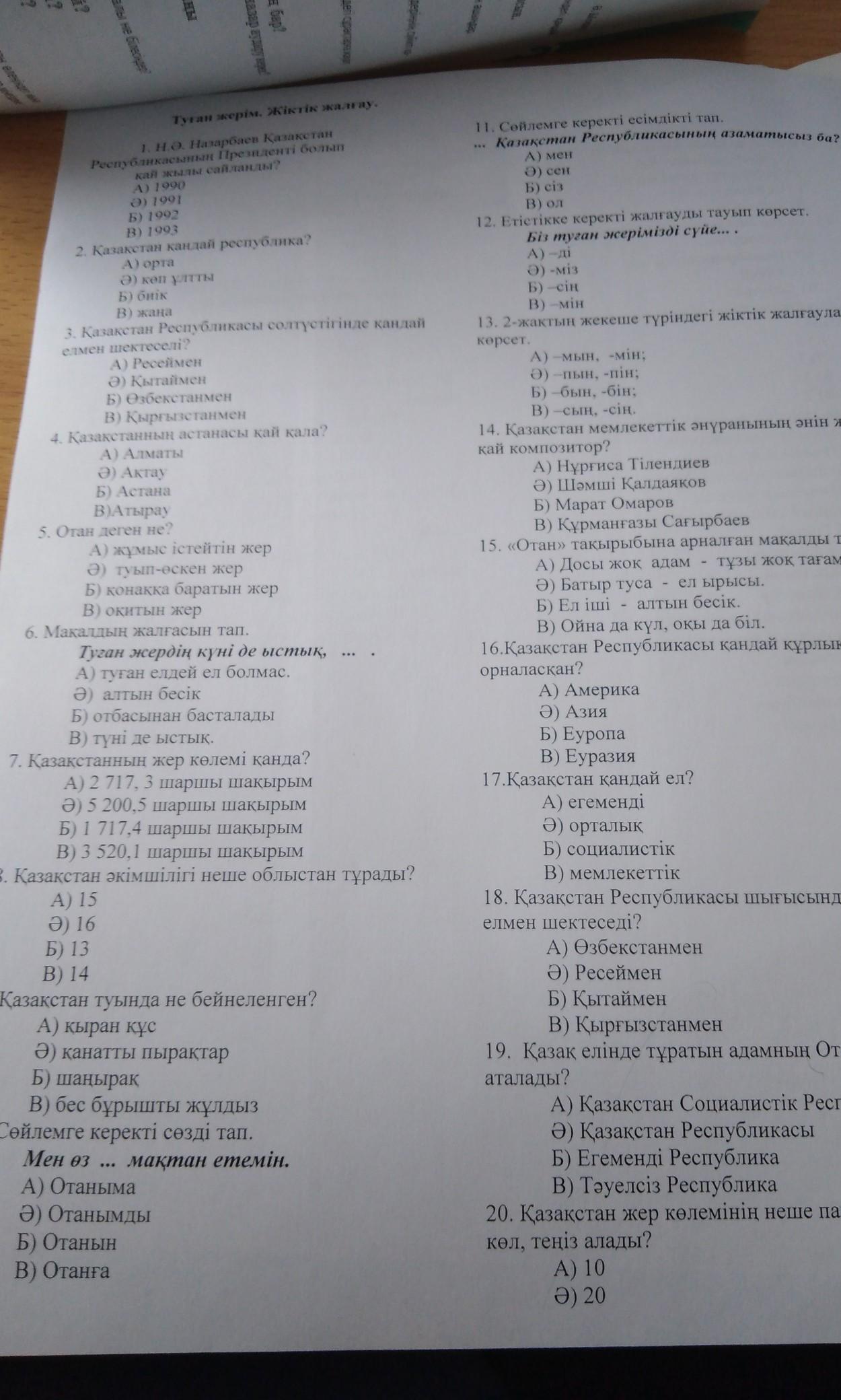 1) 1991 2) Ə 4)A 9)Б 10) Ə 12)Ə 14) Ə 15)Б