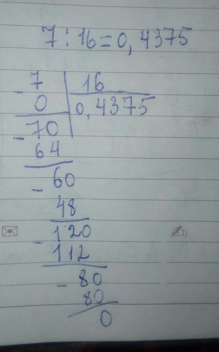 с помощью деления превратите обыкновенную дробь семь шестнадцатых в десятичную пажалуйста буду благодарна