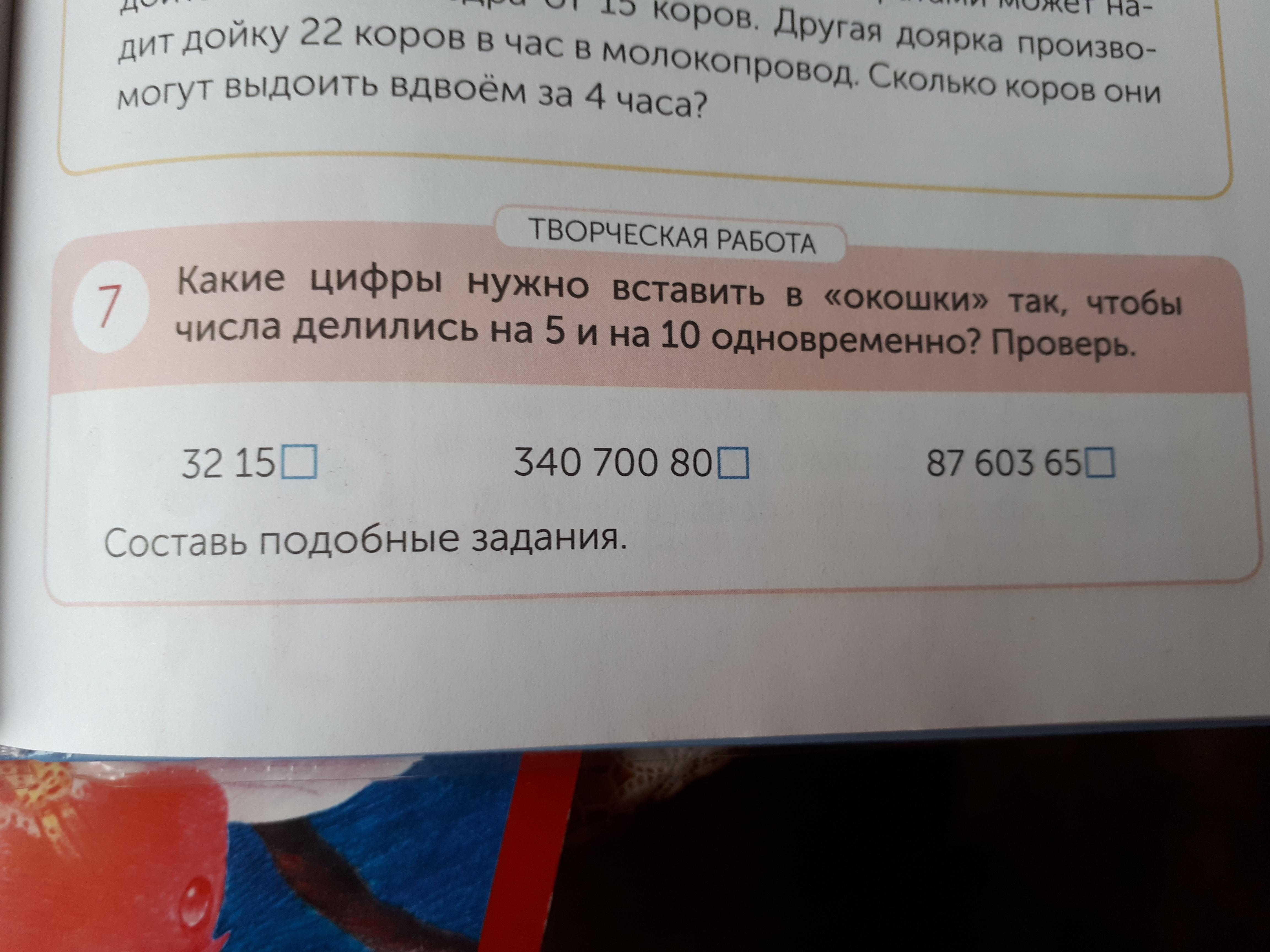 подобные задания: какие числа нужно вставить в окошечки, что бы они делились на 2 и 10.