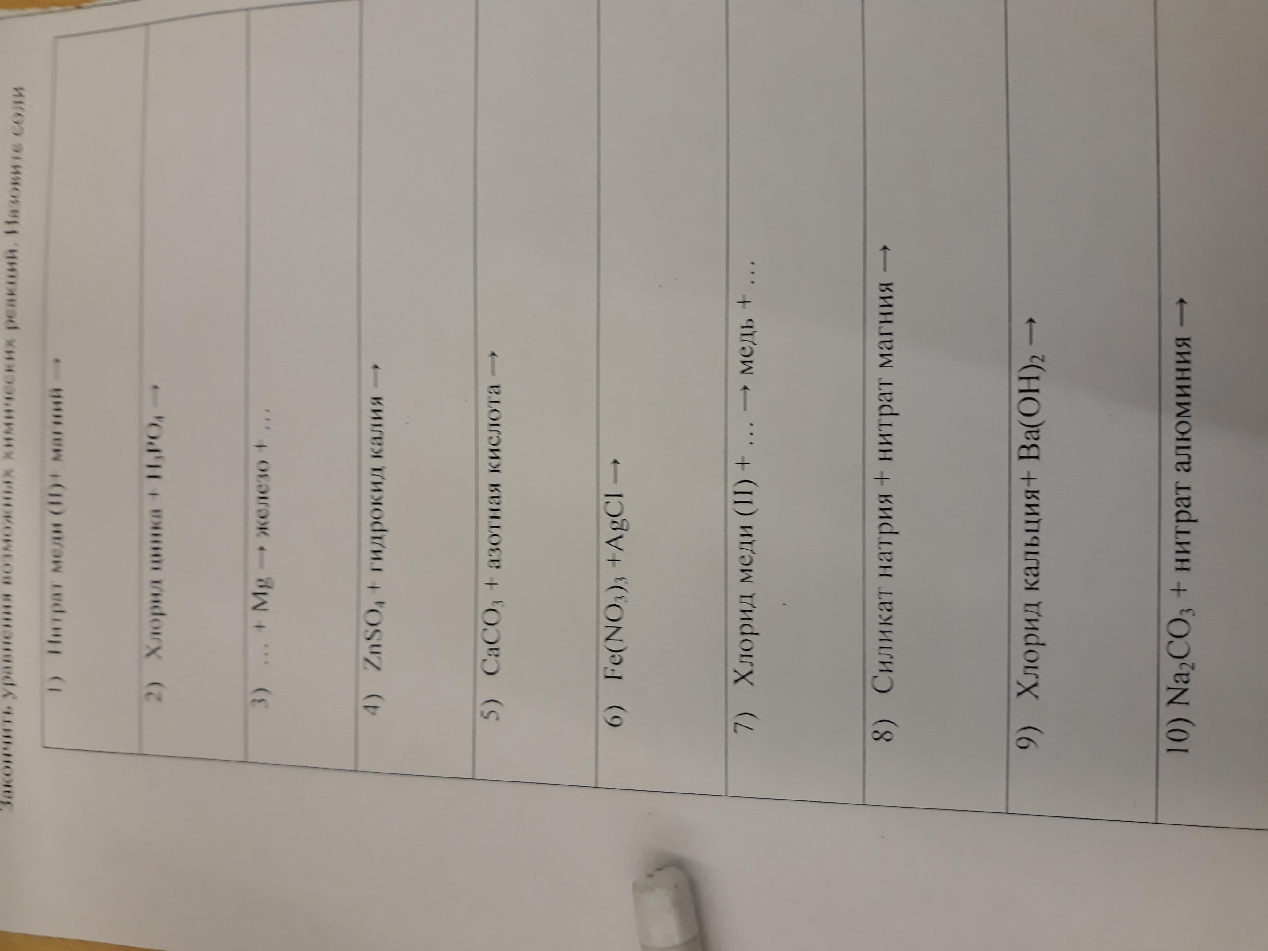 7) СuCl2 + Mg = MgCl2 + Cu (замещение) ( хлорид меди, хлорид магния)