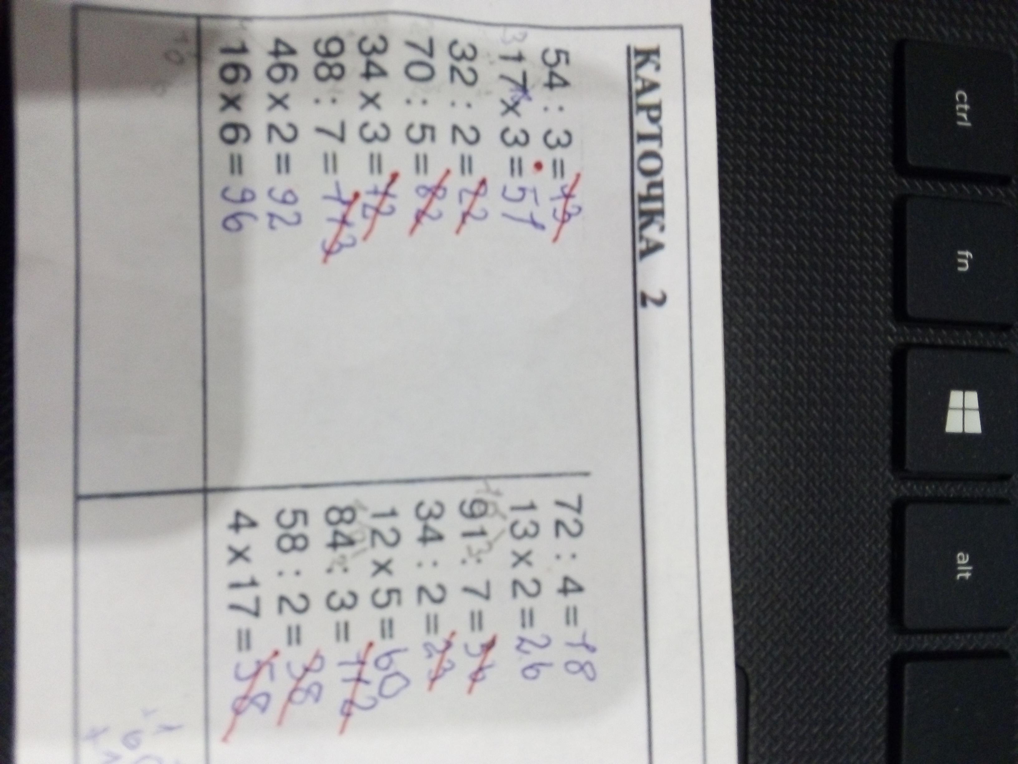 53:3=18; 17*3=51; 32:2=16; 70:5=14; 34*3=120; 98:7=14; 46*2=92; 16*6=96; 72:4=18; 13*2=26; 91:7=13; 34:2=17; 12*5=60; 84:3=28; 58:2=29; 4*17=68