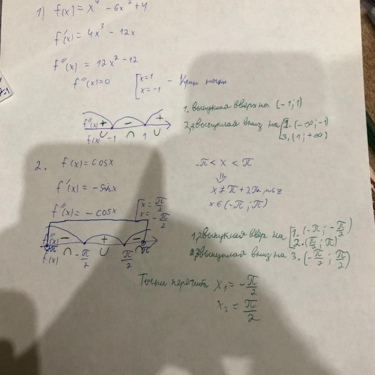 Найти интервалы выпуклости вверх и интервалы выпуклости вниз функции f(x)=x^4-6х^2+4 .
