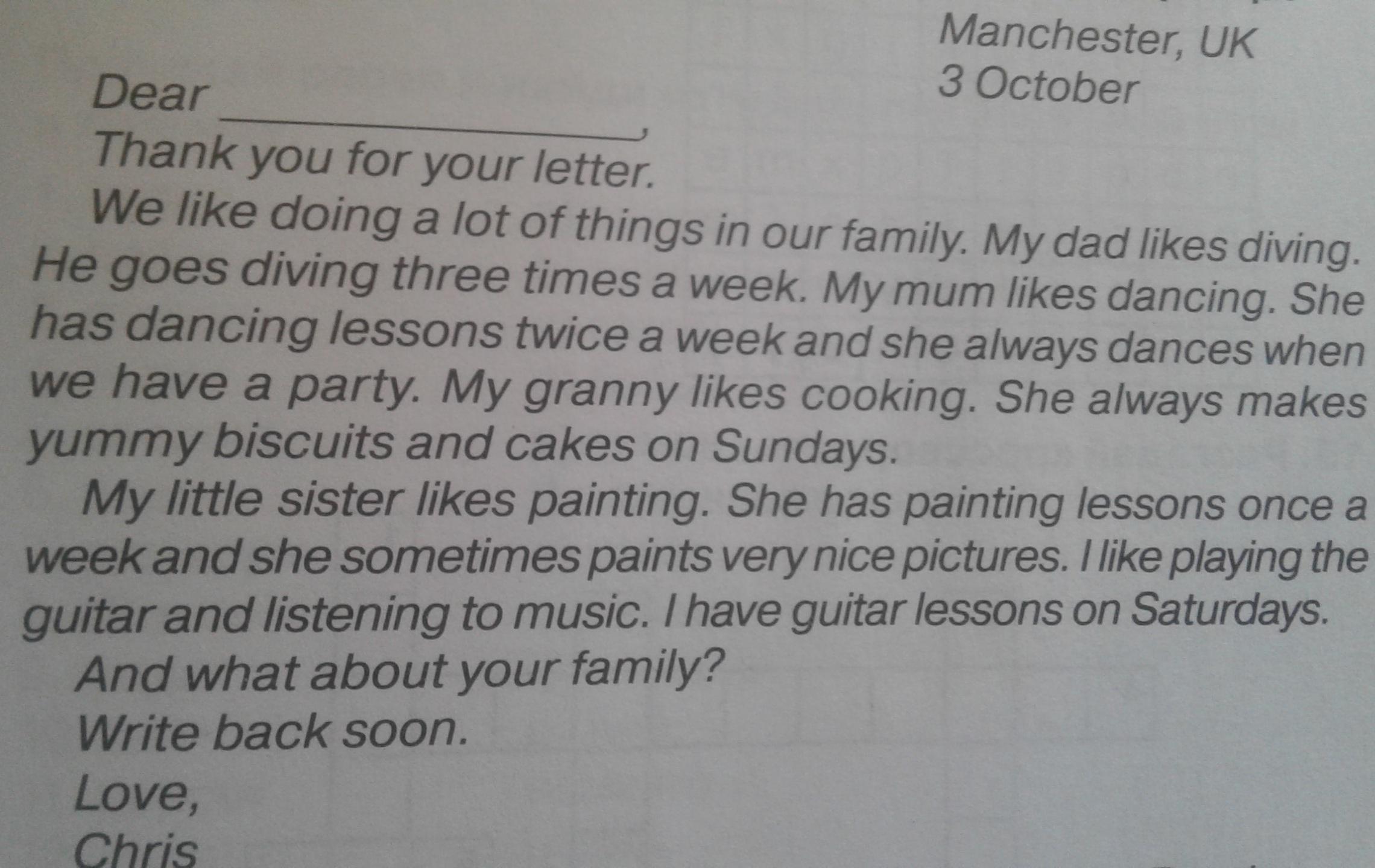 you ve got a letter from your american friend write her a letter and answer his three questions. write 50-60 words.