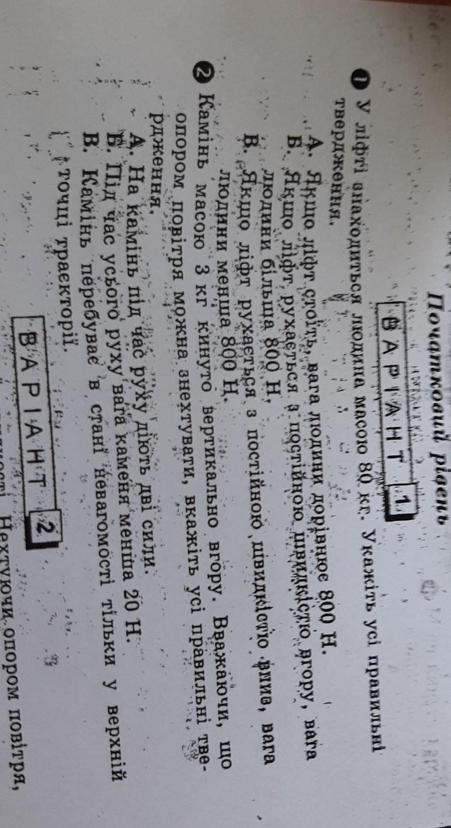 1)а—Якщо ліфт стоіть, вага людини дорівнюэ Н