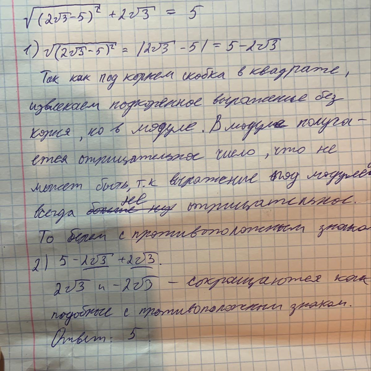 Раскрываем модуль. Так как 5>2√3 ⇒