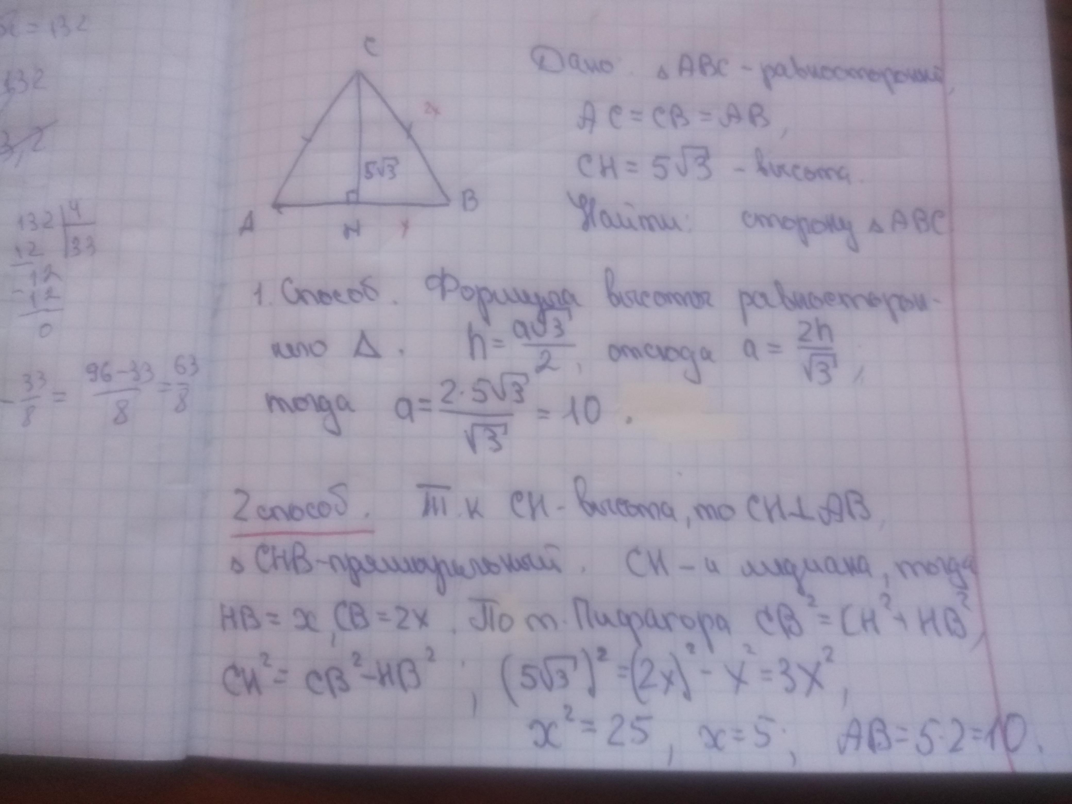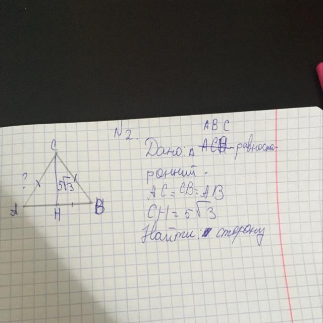 Сторона равна 2h / корень из 3, т.е сторона равна 10