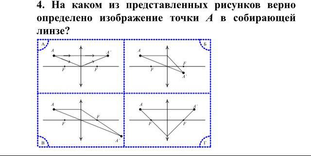 правила построения лучей в собирающей линзе: первый луч идет через оптический центр линзы без изменений, второй параллельно главной оптической оси до линзы, потом преломляется в линзе и проходит через фокус линзы. На пересечении этих лучей и получается изображение предмета.