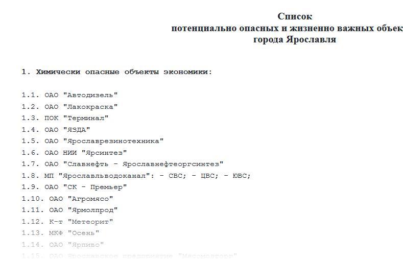 Помогите срочно, даю 25 баллов!Перечень потенциально опасных объектов на территории Ярославской области