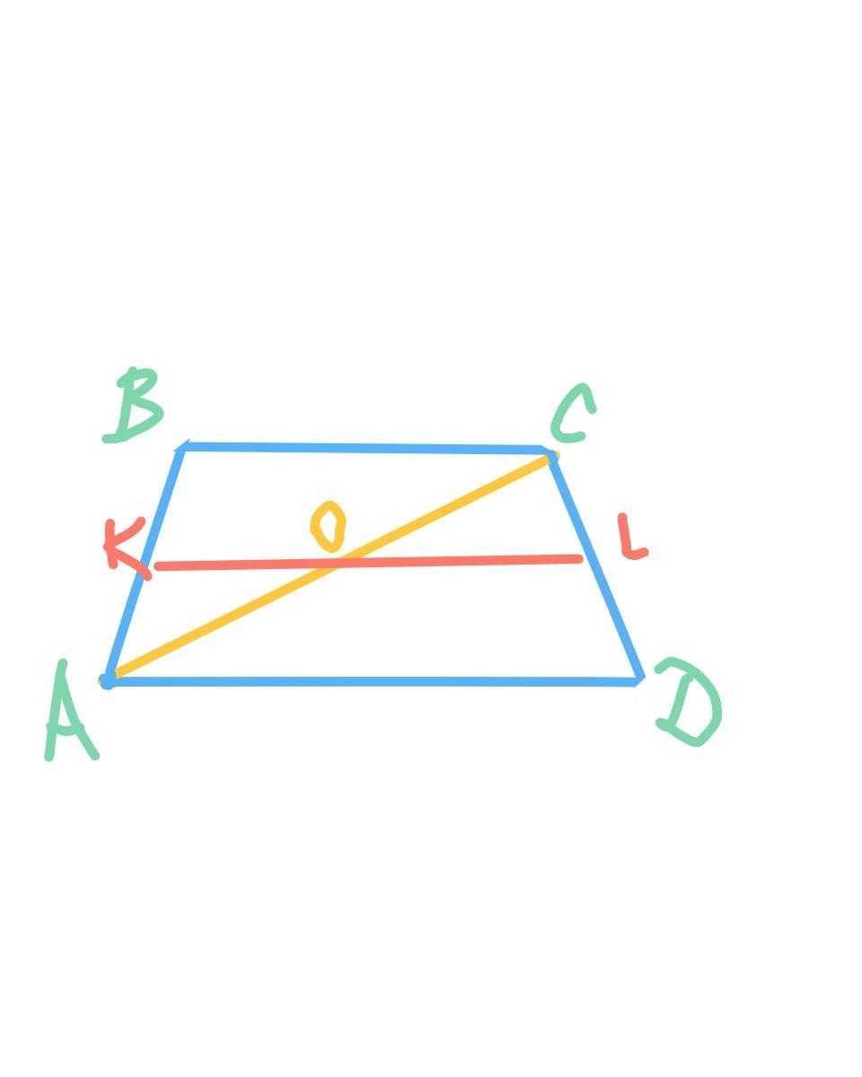 основание трапеции ABCD равны 10 и 12 см диагональ AC и средняя линия KL пересекаются в точке О найдите отрезок OL