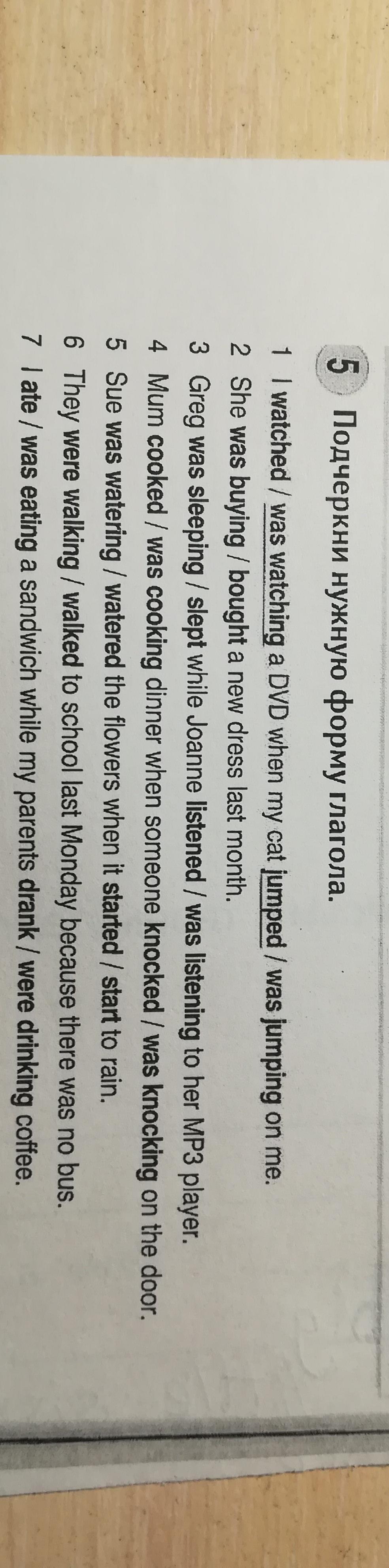 2 bought 3slept и listened 4cooked и was krocked 5was watering и start 6walked 7ate drank