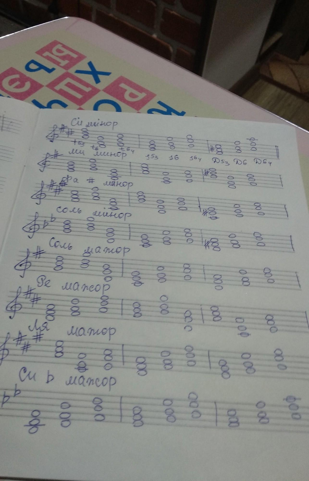 помогите срочно! Постройте обращения главных трезвучий в тональностях: си минор,ми минор,фа-диез минор,соль минор,соль мажор,ре мажор,ля мажор,си-бемоль мажор.(на фото пример)заранее спасибо