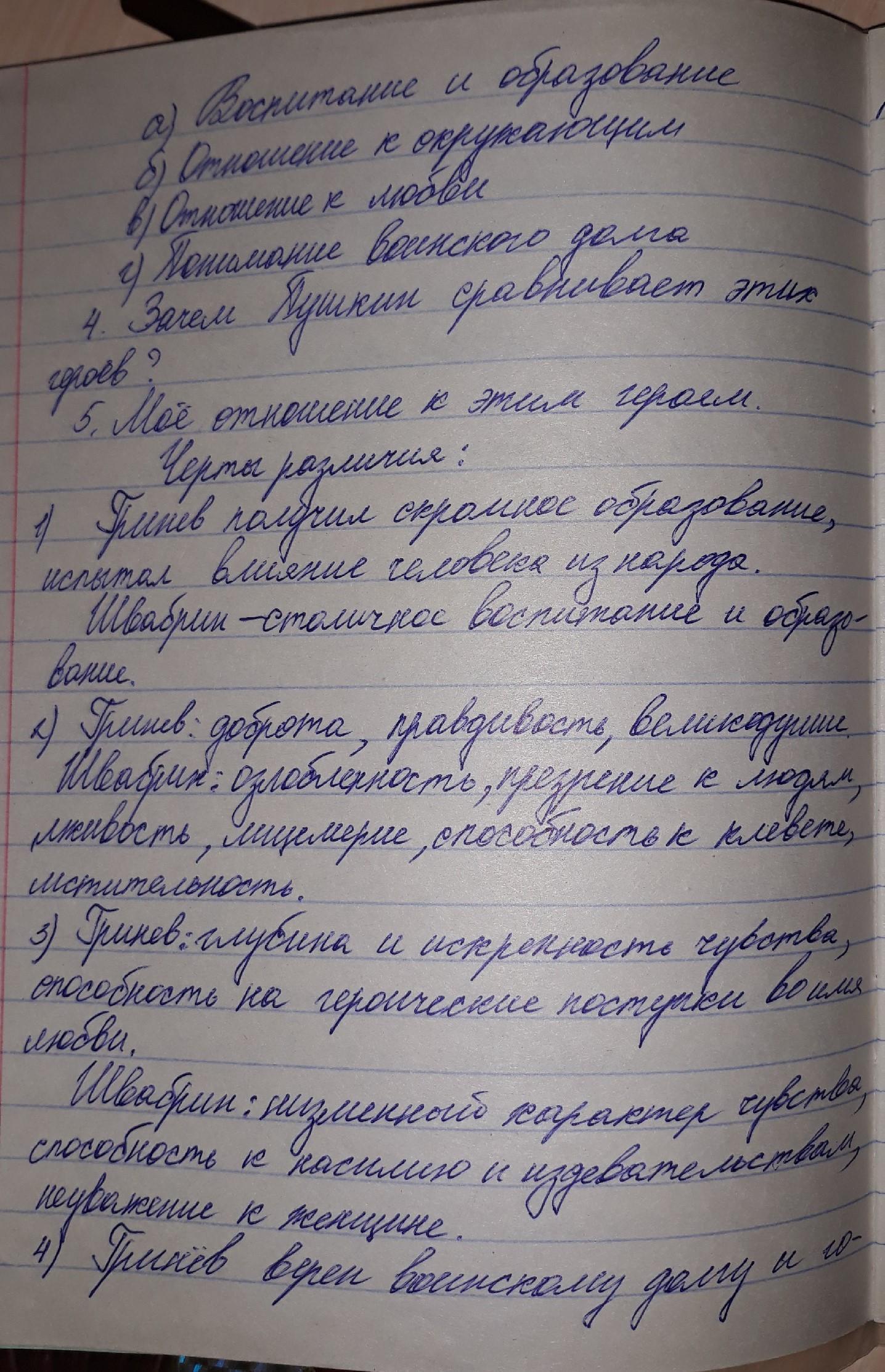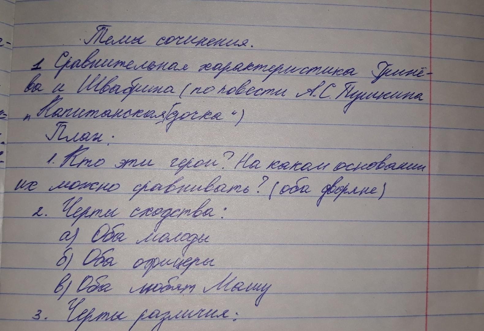 Нужно сочинение на тему "Cравнительная характеристика Гринева и Швабрина (по повести A.C Пушкина, "Капитанская дочка" по плану ниже. Заранее спасибо)