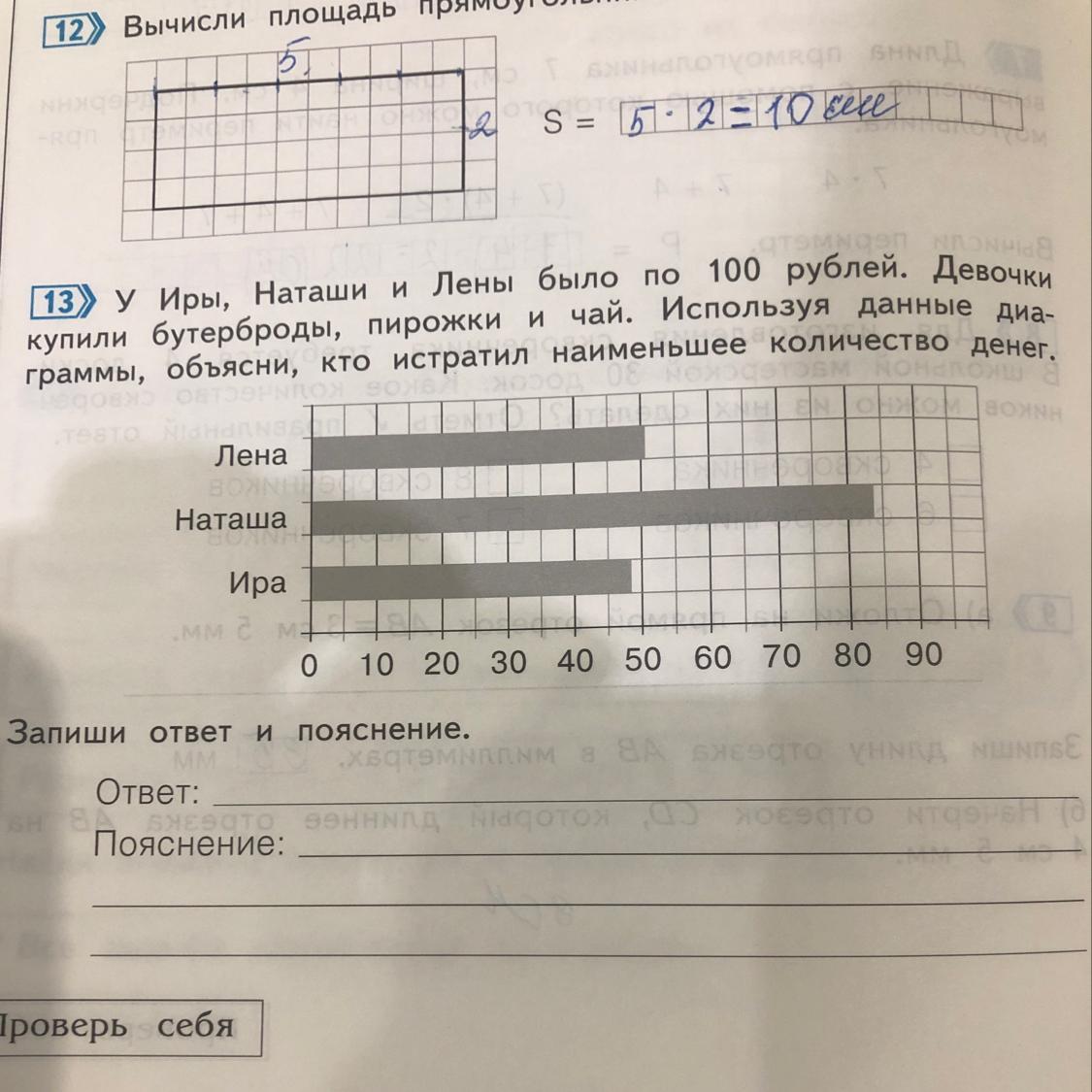 Лена потратила 50 рублей