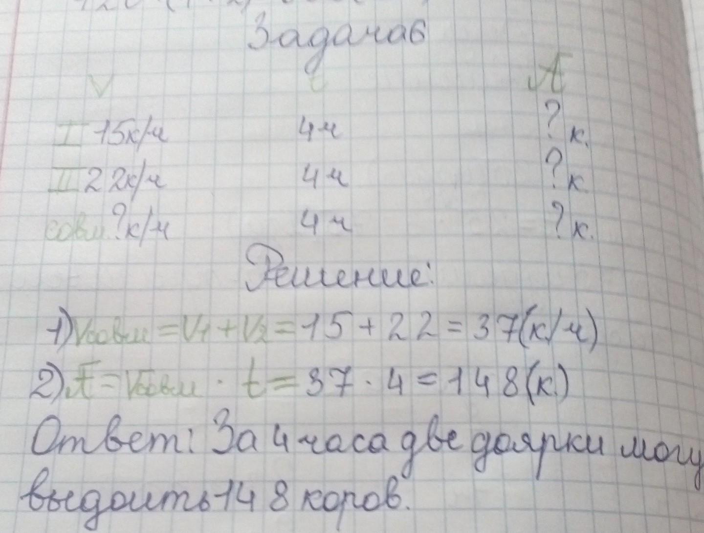 Одна доярка за час двумя доильными аппаратами может надоить молока в вёдра от 15 коров. Другая доярка производит дойку 22 коров в час в молокопровод.Сколько коров они могут выдоить вдвоём за 4 часа?