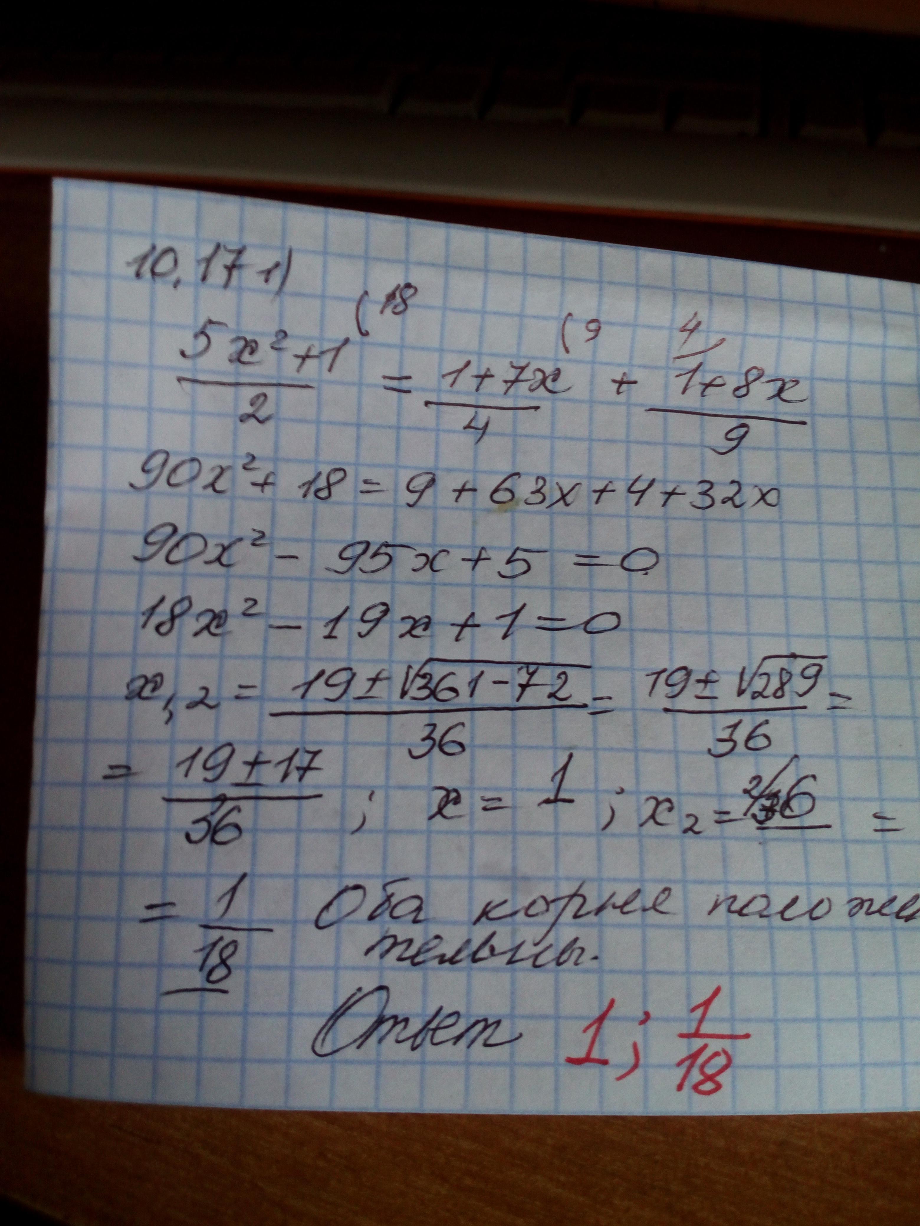 (5х^2+1)/2 = (1+7х)/4 + (1+8х)/9.