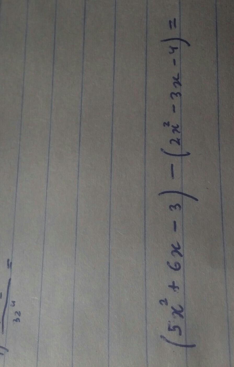 (5x^2 + 6x - 3) - (2x^2 - 3x - 4) = 5x^2 + 6x - 3 - 2x^2 + 3x + 4 = 3x^2+ 9x + 1