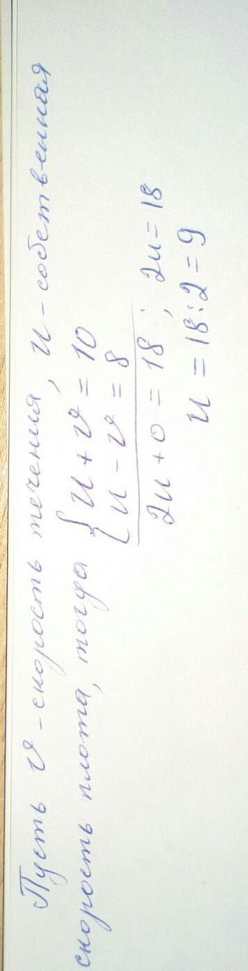 По течению реки плод плывёт со скоростью 10м/с, а против течения 8м/с. Найти скорость плота. ПРОШУ ПОМОГИТЕ ПОЖАЛУЙСТА