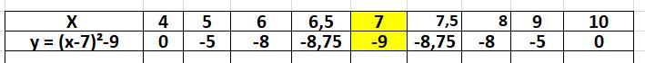 ДАНО: y = (x-7)² - 9