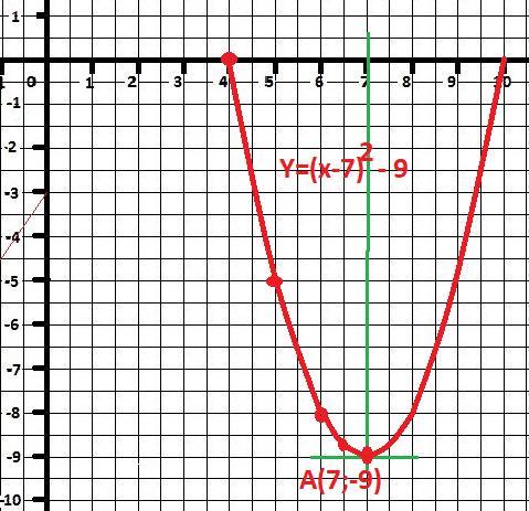 В этой записи прямо задана вершина параболы в точке А(7;-9).
