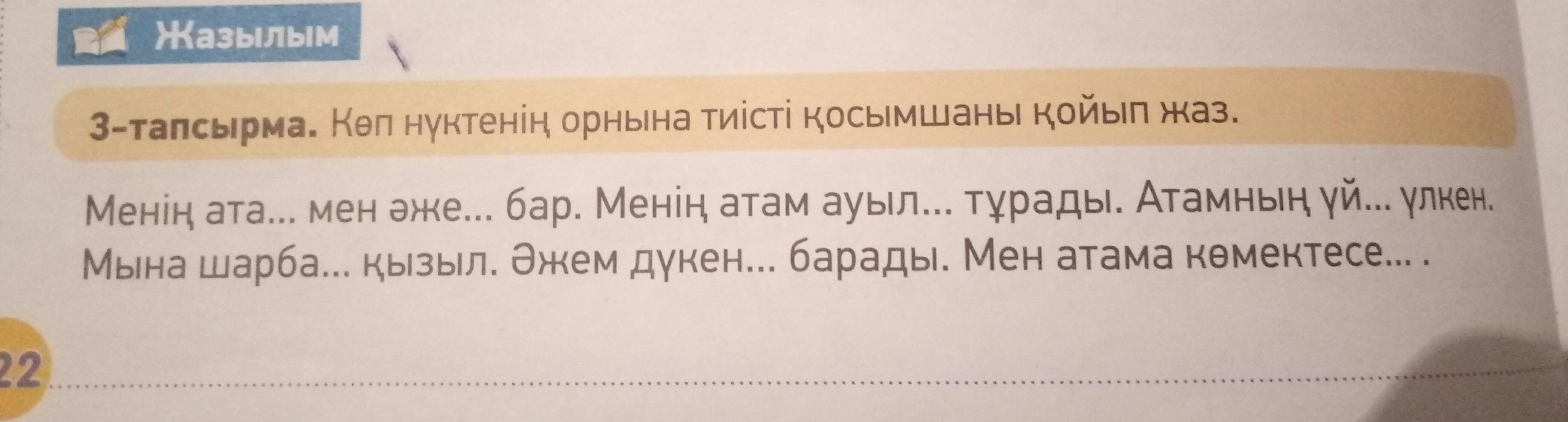 Менің атам мен әдемі бар.Менің атам ауылда тұрады.Атамның үйі үлкен.Мына шарбақ қызыл.Әжем дүкенге барады.Мен атама көмектесем.