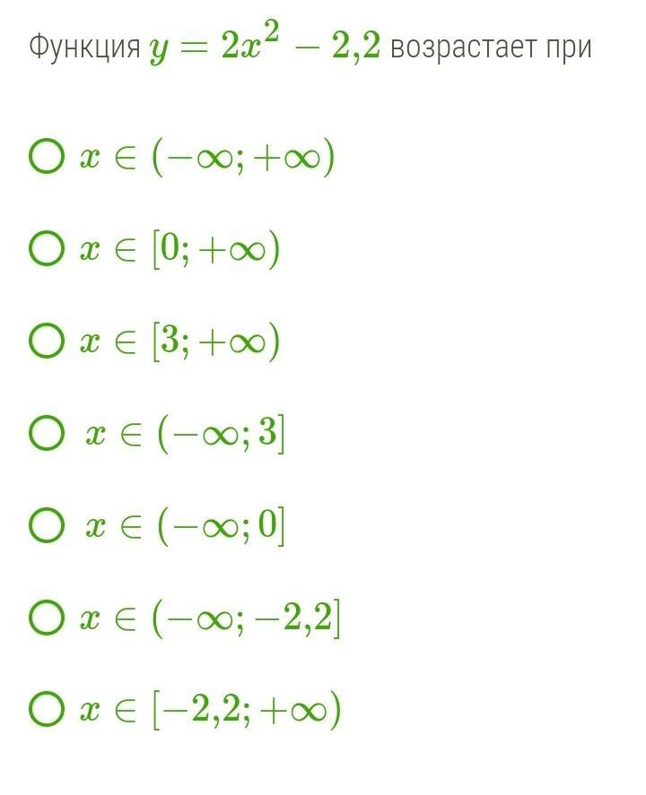 Функция возрастает на промежутке x -> [ 0 ; +∞) (вариант 2-ой сверху)