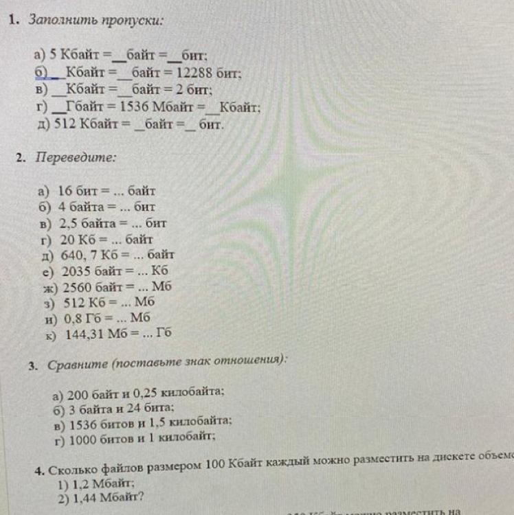 1)а. 5 кбайт = 5120 байт = 40960 бит